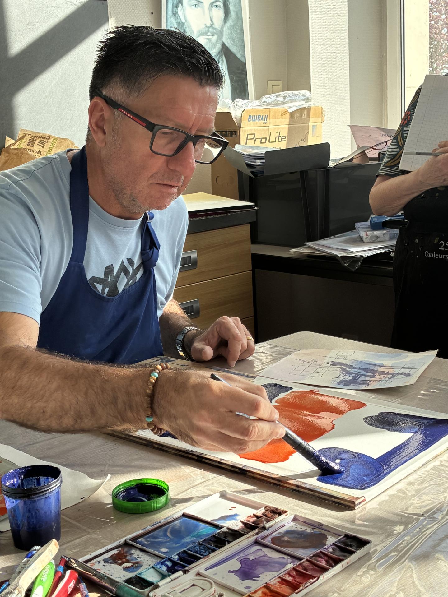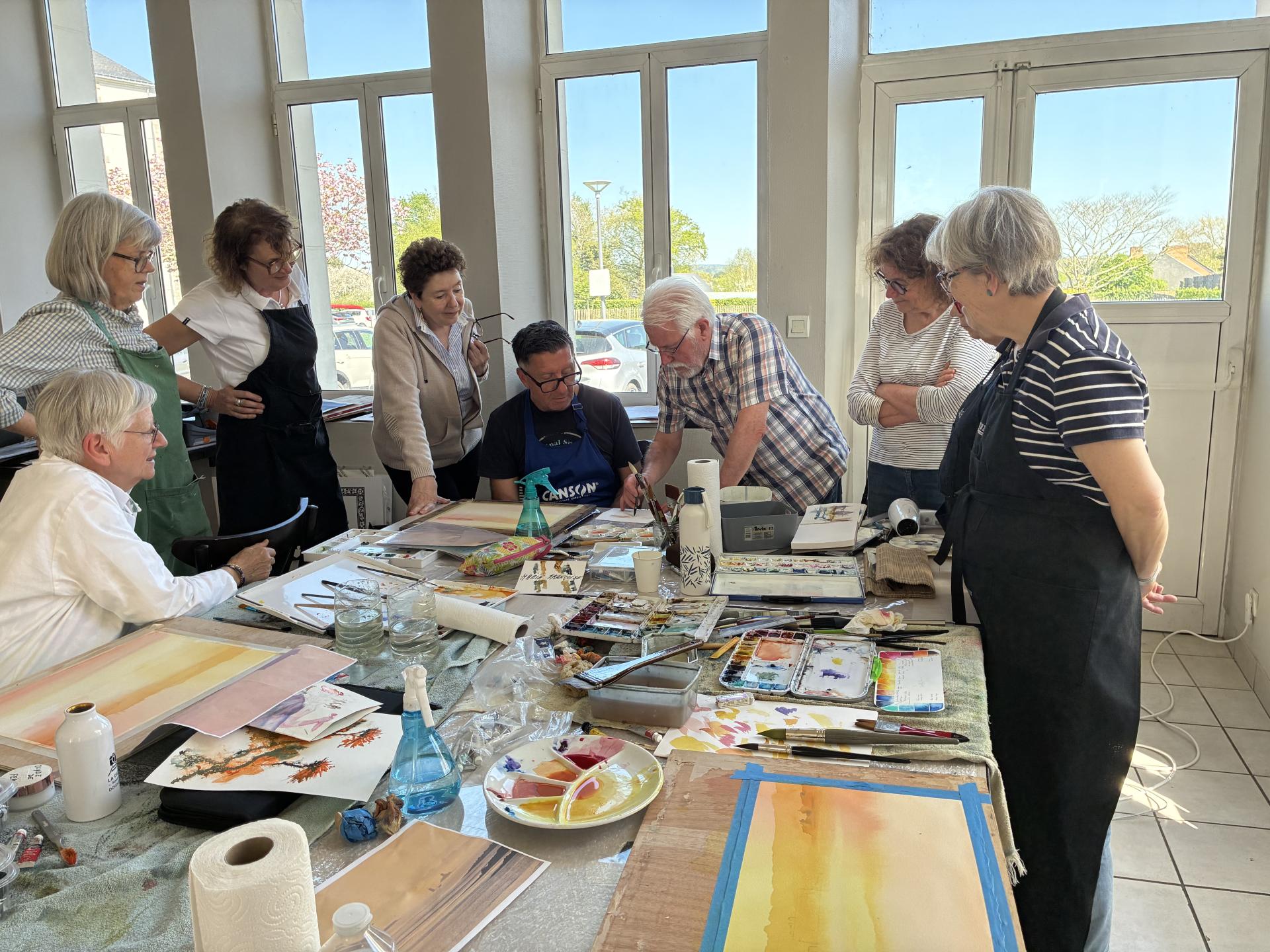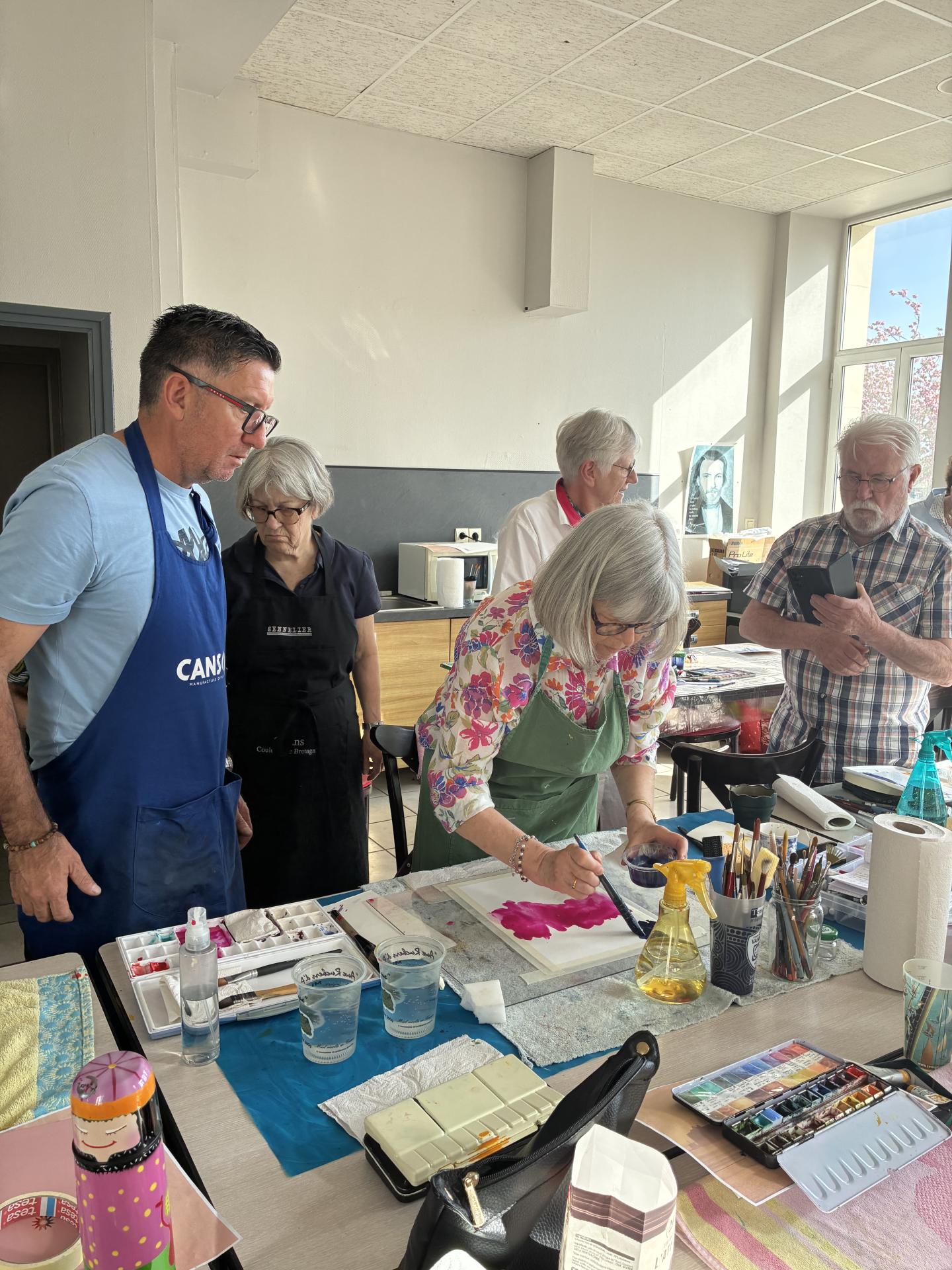 Le stage de Stéphane fut une parenthèse enchantée autour de l'aquarelle, de très grande qualité ! Au-delà de son grand talent qui nous a tous bluffés, nous avons tous énormément apprécié sa pédagogie positive, qui a permis à chaque stagiaire de repartir avec le sentiment d'avoir progressé et réussi ! Stéphane a su à la fois transmettre des techniques de base, et ses secrets avec beaucoup de gentillesse, un vrai sens du partage et une grande humilité. Il nous a permis d'expérimenter de nombreuses façons de peindre. De plus, son humour et sa bonne humeur ont rendu l'apprentissage plus facile !