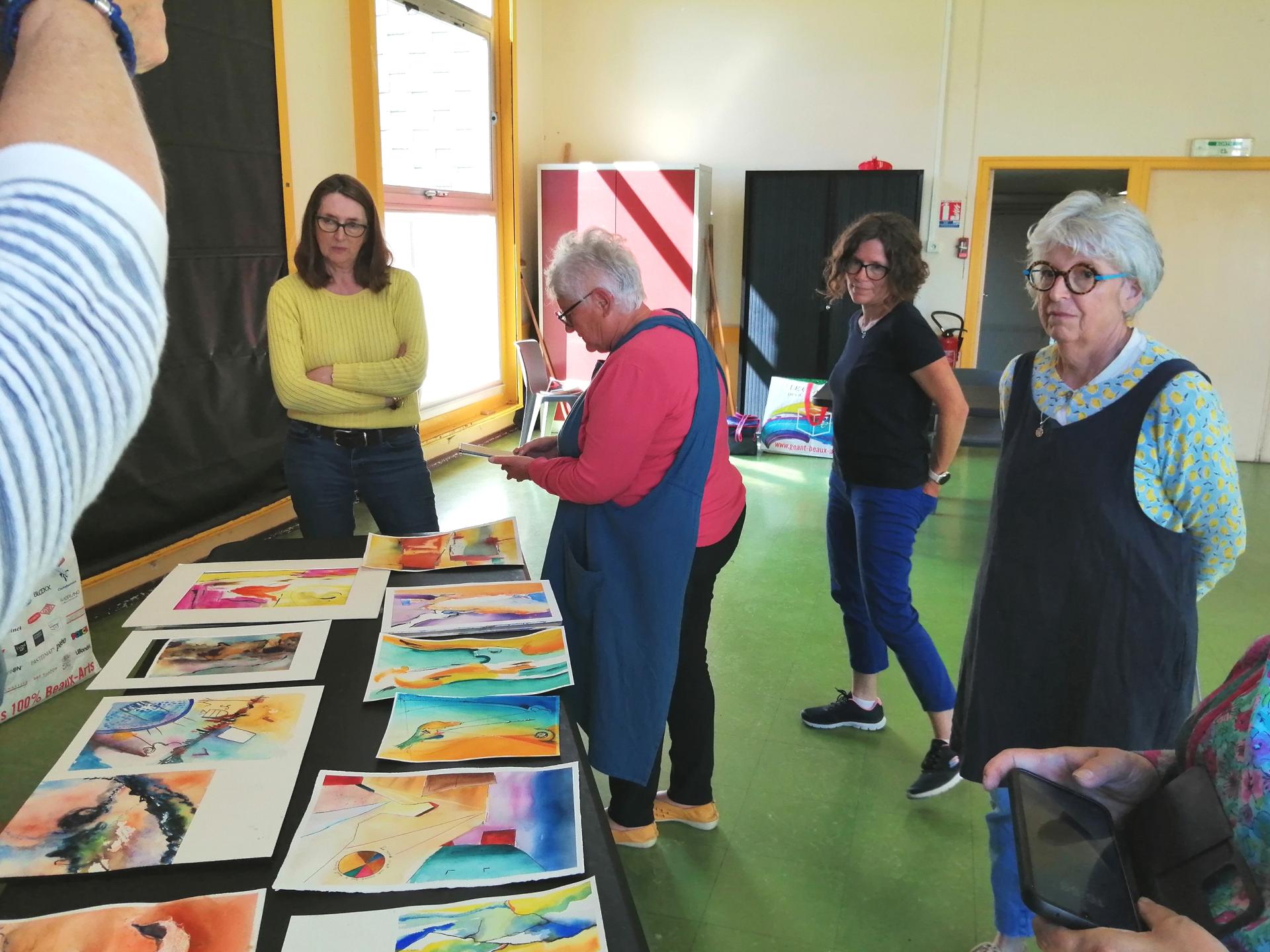 "Chouette stage avec Marie-Françoise Ingels, aujourd'hui. Trois Vannetoises nous ont rejoints à la Maison pour Tous pour une belle incursion en abstraction."